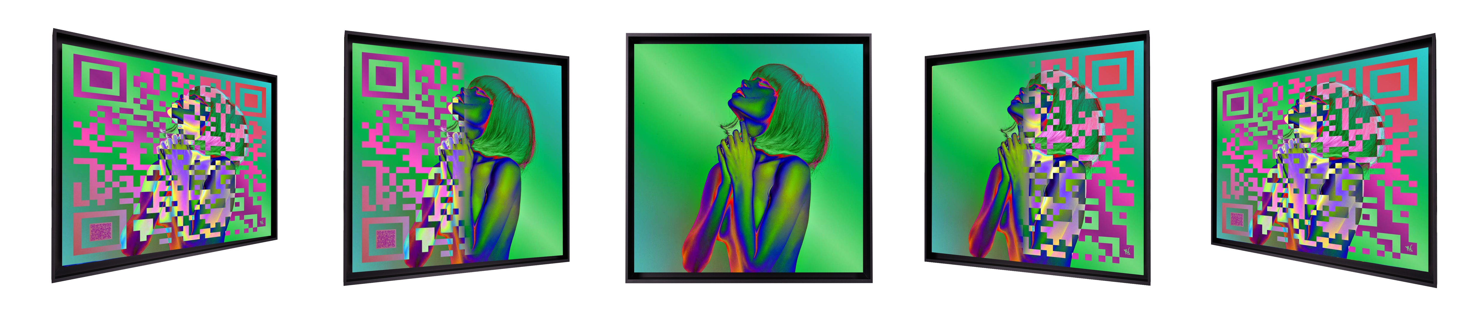 Using lenticular technology, this piece subtly evolves with movement, revealing new shades of color and shape at every angle. Inspired by a modern interpretation of royalty and feminine strength, Green Victoria invites a profound visual reflection on power and grace.