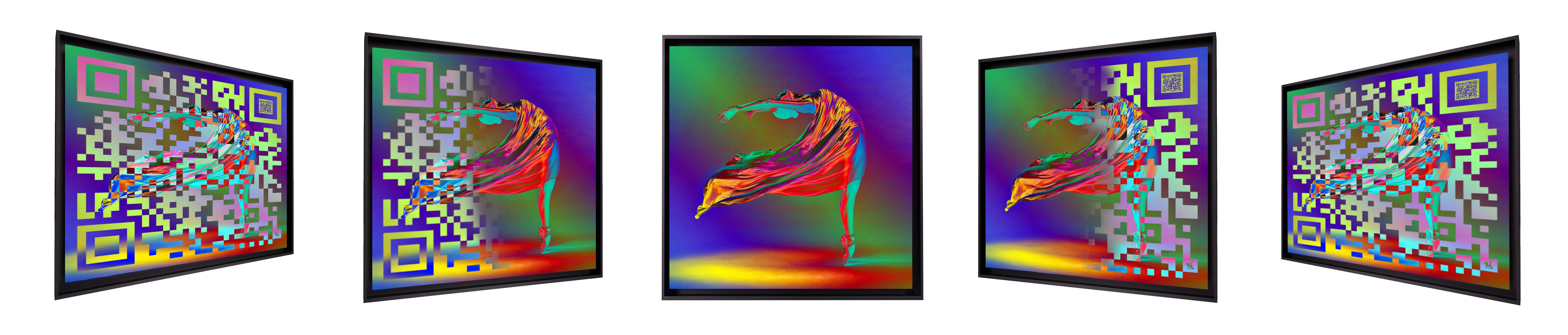 An integrated QR code allows, via augmented reality, to animate the image and reveal an immersive digital version of the work
