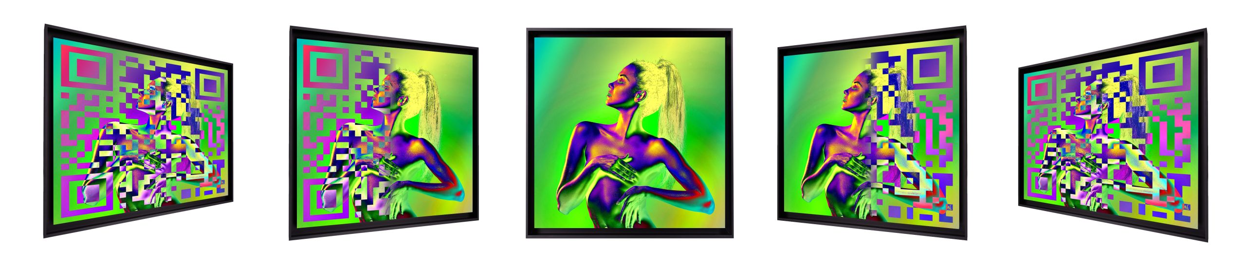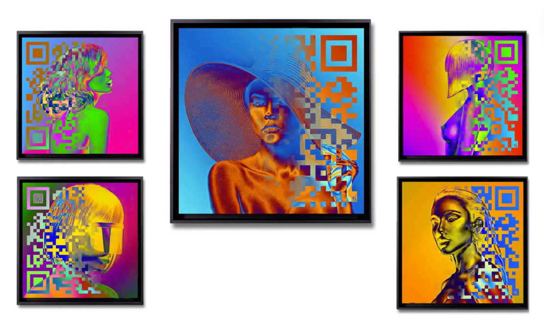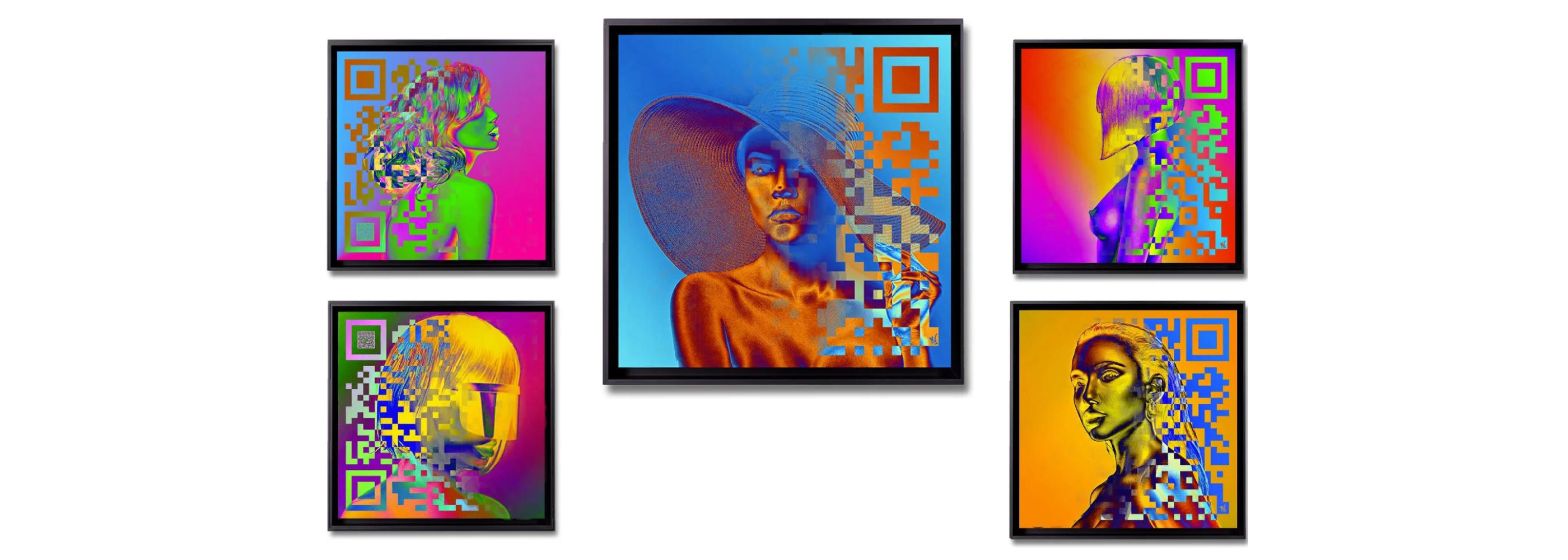Au fil de figures féminines, Youns propose en effet bien plus à voir que des portraits colorés, il crée entre l’œuvre et celui qui la regarde une véritable interaction grâce à un QR code actif associé à chaque tableau.